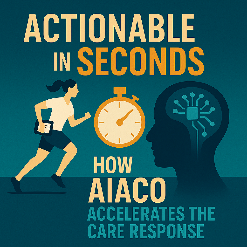 Too often in modern care systems, insights emerge but are left unattended—like unopened letters on a desk. AIACO changes this paradigm by embedding real-time triggers into care pathways, assigning ownership and response expectations to each surfaced risk. Once a signal is detected, the AI doesn’t just report—it initiates a predefined, customizable workflow that reaches the right human or automated agent, every time.